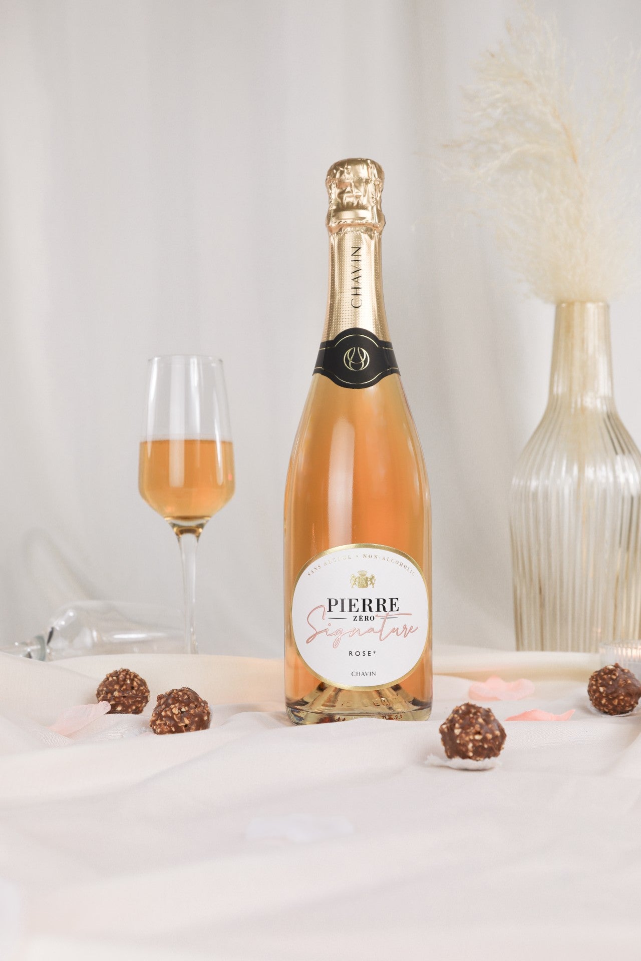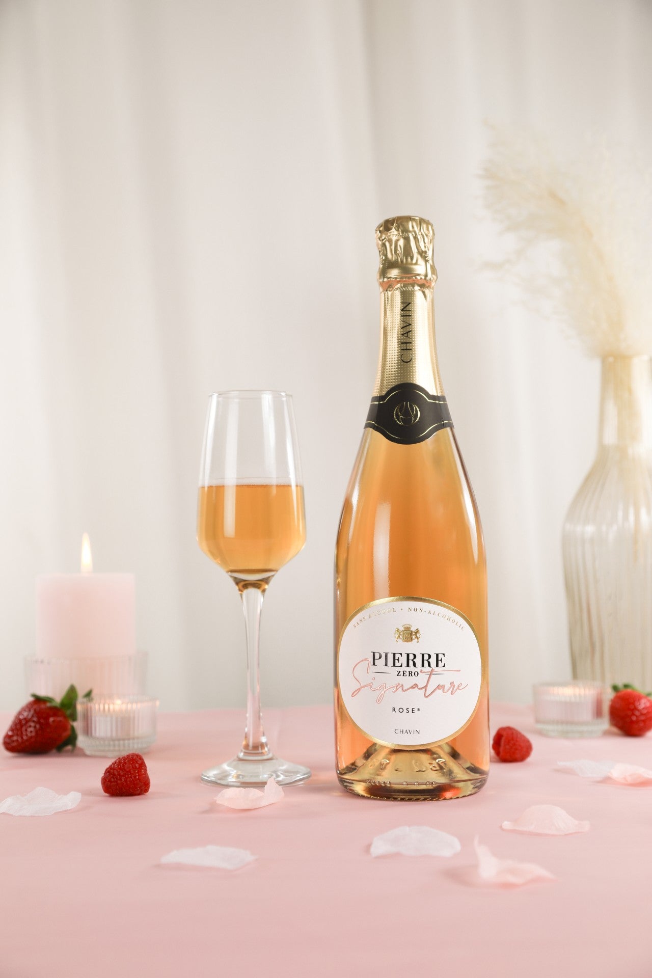 Pierre Zéro Signature Rosé is a non-alcoholic version made from rosé wine, which is completely free of any additives and preservatives , thus offering not only a delicious, but also a particularly clean and natural experience.